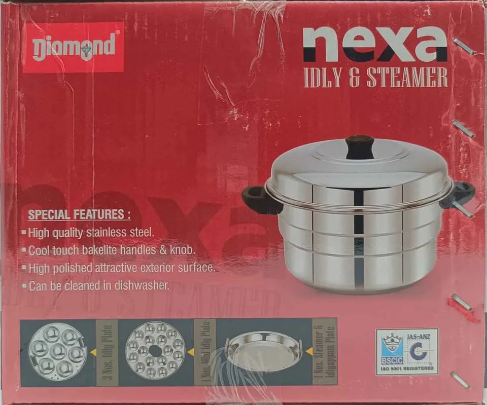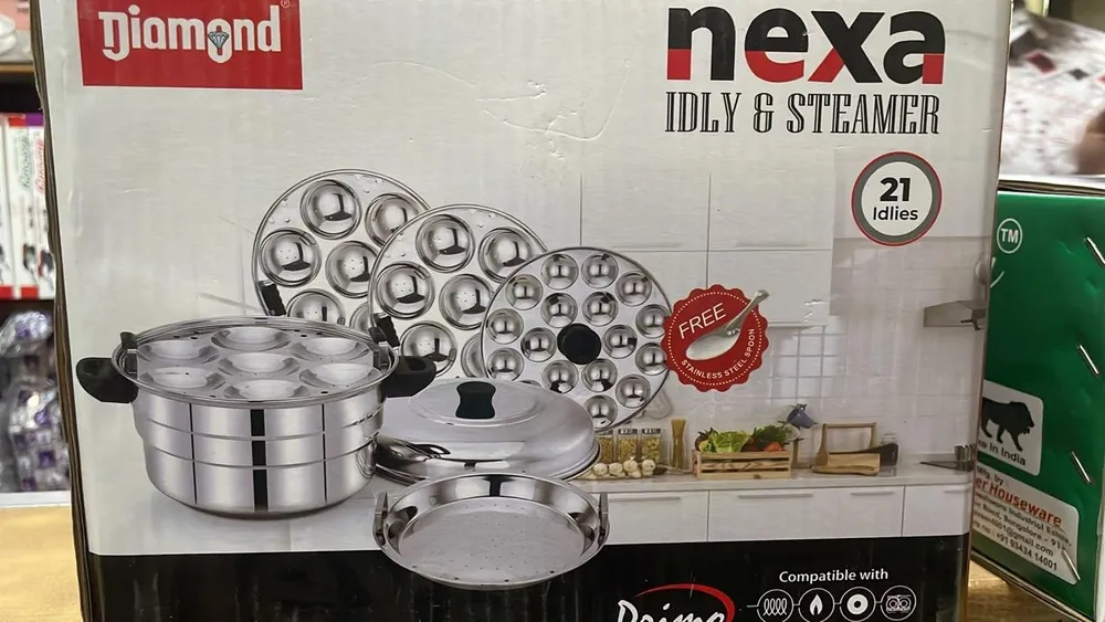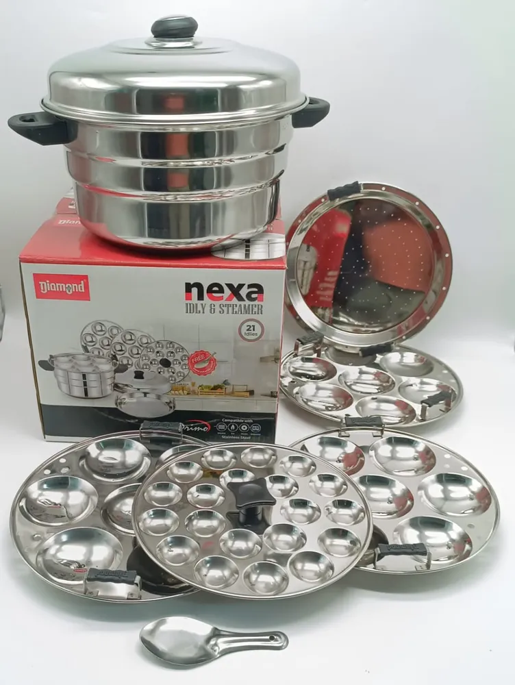 Idly pot with steamer 21pcs 3pcs Idly plate 1pcs mini idly plate 1pcs steamer & Idiyappam plate - Key Features: - Capacity: 3 Idli plates (21 idlis), 1 mini idli plate (20 ... Read More