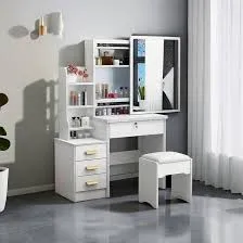 Vanity Table Set with Storage Drawer & Chair & 3 Shelves Dressing Table with Sliding Mirror W80 x D35 x H130 cm 2 color