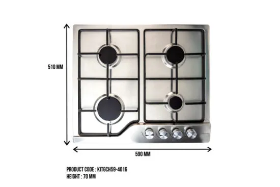 4 BURNER SS GAS COOKER ROUND H59-4016 ARISTON Code : KITGCH59-4016 Product Dimension : 590mm X 510mm X 70mm Cut Dimension : 550mm X 470mm Cooker Type : Gas Ignition Type : Battery Cook... Read More