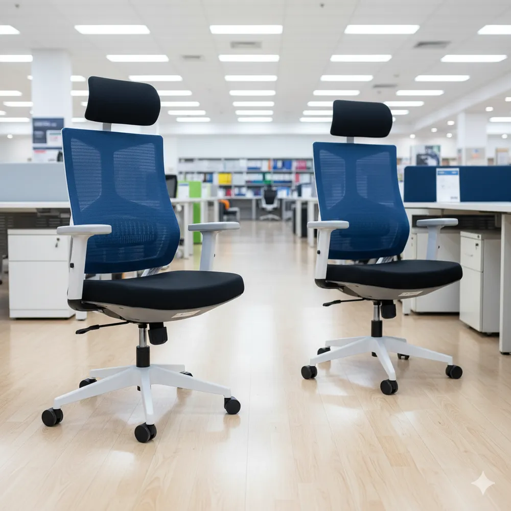 HIGH BACK BLUE MESH CHAIR Comfortable seat Smooth-rolling caster wheels Adjustable seat height Strong and durable base Stylish and modern design – ideal for office or home use