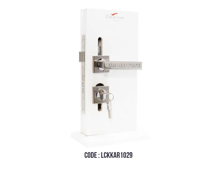DOOR LOCK KAREKO Z0-01212 NS/SN MABITALIA Code : LCKKAR1029 Lock Type : Main door lock Material : Zinc Alloy Color : Satin Nickel Applicable door thickness : 25mm to 55mm