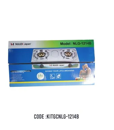 SS 2 BURNER GAS STOVE NULEK JAPAN NLG-1214B Code : KITGCNLG-1214B Material : Stainless steel Color and Surface : Silver Features : This is a great and easy to use gas cooker