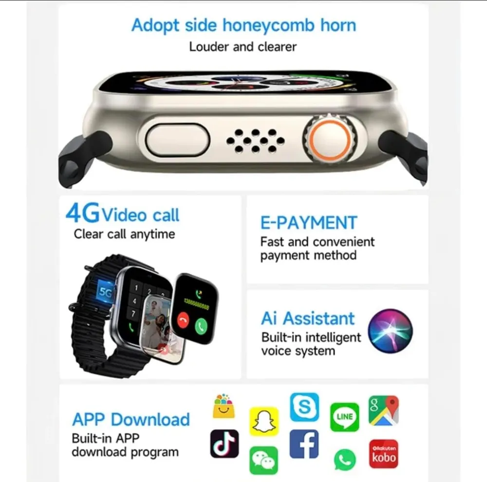 Experience next-level performance with the D800 Ultra 4G Call Smart Watch, engineered for users who want style, power, and advanced health tracking in one device. Featuring a stunning 2.12-inch large ... Read More