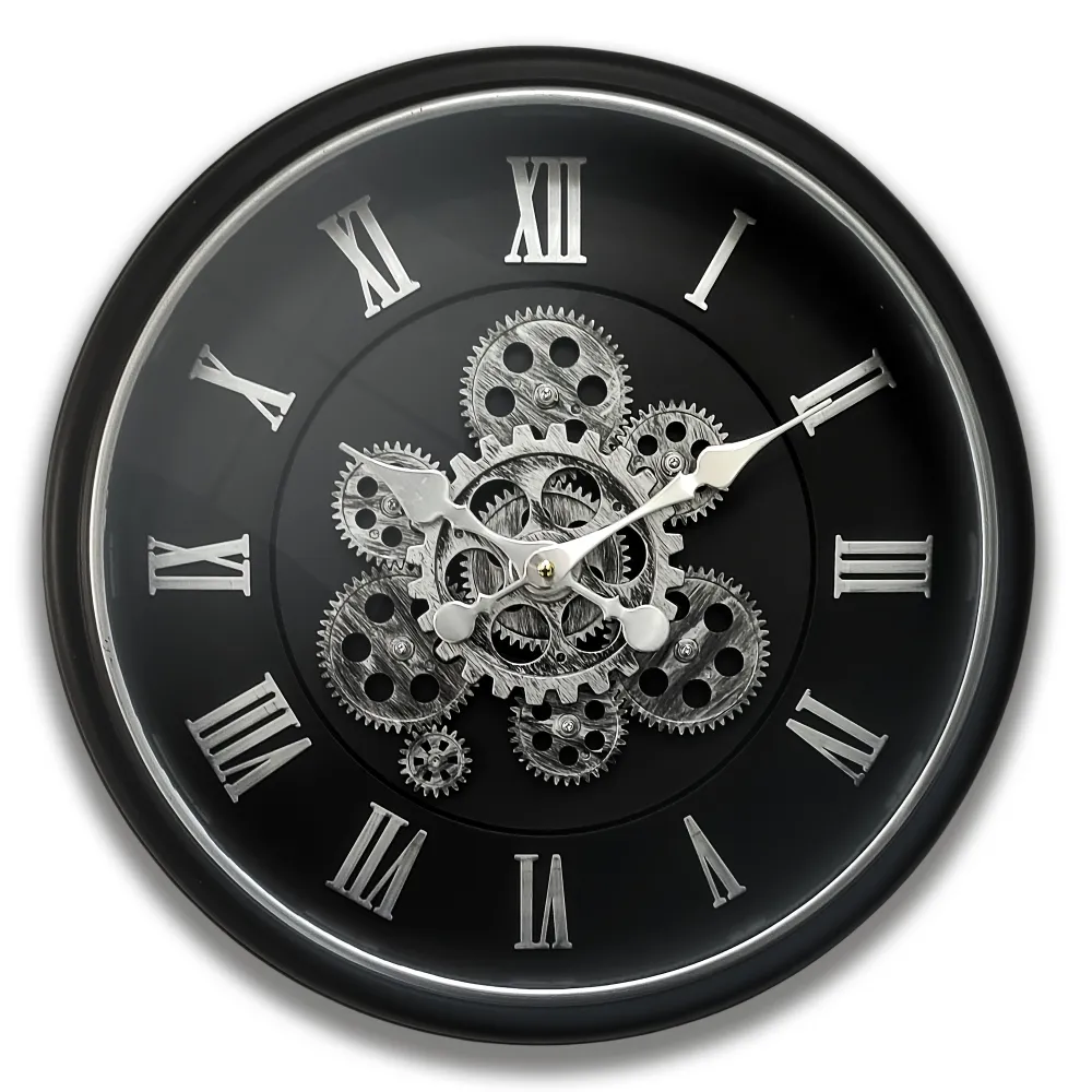 Luxury Industrial Gear Wall Clock Decoration Retro Silent Mechanical Large Home Decorative Room Art Style Gift Wall Clock 16inch 8457-1