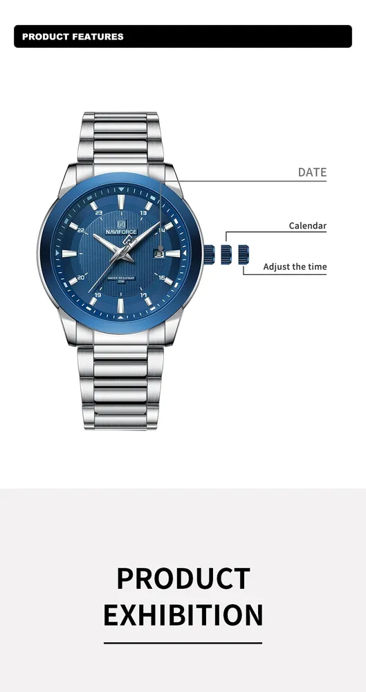 NAVIFORCE NF8029 Fashion Men Watches Date Waterproof Quartz Wristwatch Luxury Casual Luminous Clock