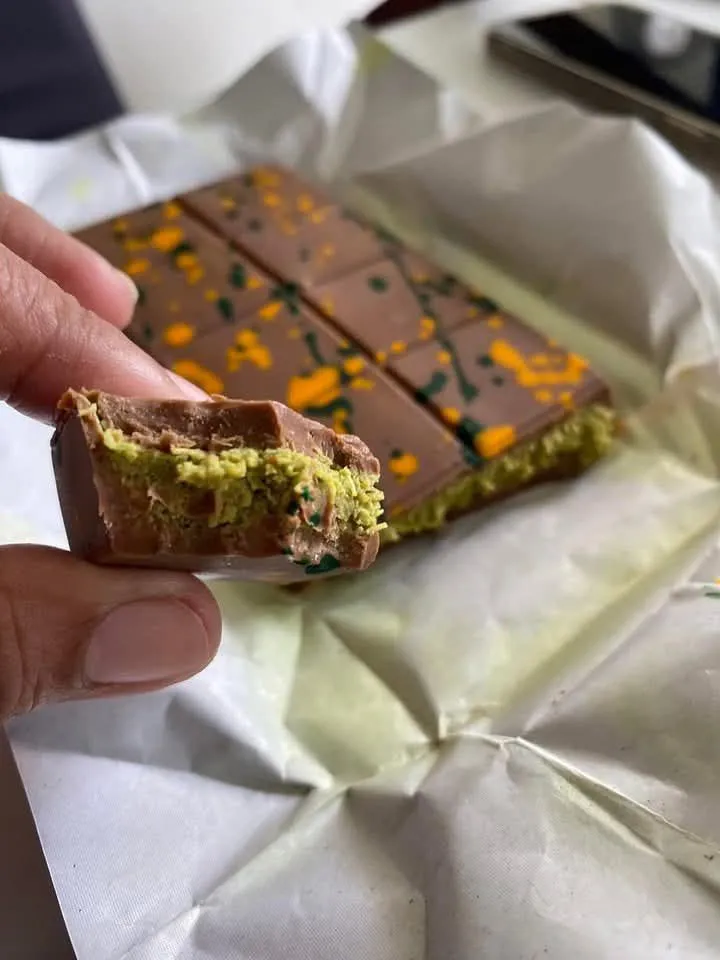Fex Dubai Kunafa Chocolate, Experience the Exquisite Fusion Of Middle Eastern and Chocolate Artistry With this Pistachio Kunafa Chocolate Bar 230 Gm (