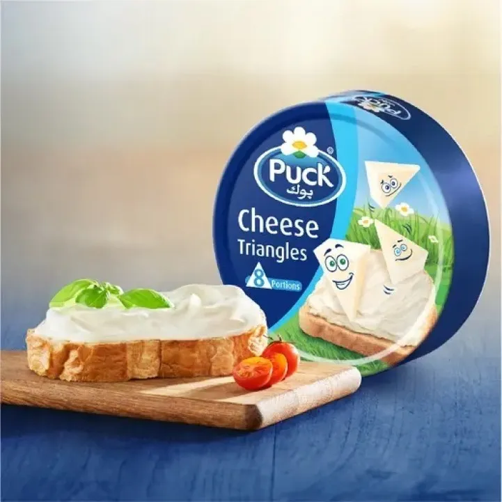 Puck Cheese Triangles 120 g – 8 individually wrapped, creamy cheese portions; ideal for spreading on sandwiches, toast or enjoy as a quick snack.