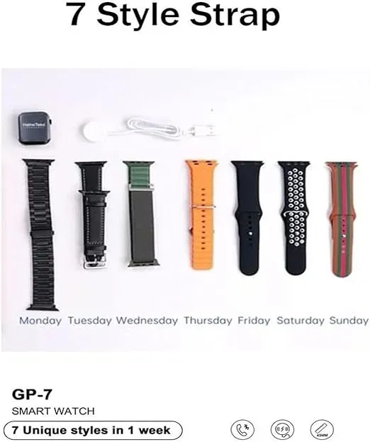 Haino Teko GP 7 Smartwatch Combo – 7 Interchangeable Straps + Wireless Charging – 45mm HD Screen, Bluetooth Calling, Activity & Sleep Tracker for Men
