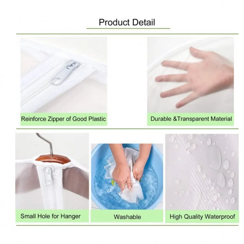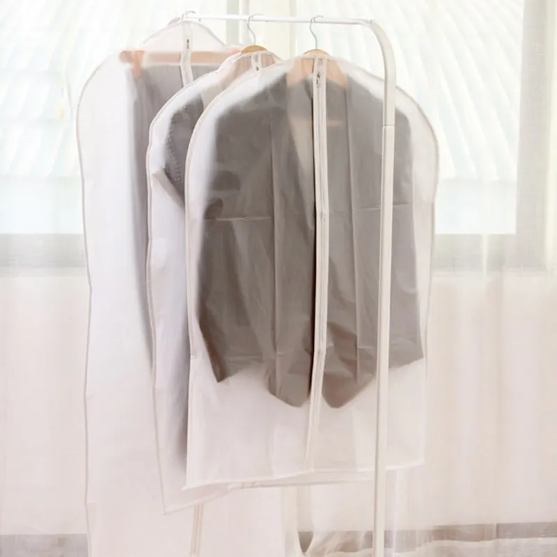 Transparent Frosted Garment Bags Clothes Covers Protecting Dusts Plastic Garment Bags Hanging Clothes Bags With Zipper For Closet Clothes Storage 1Pcs
