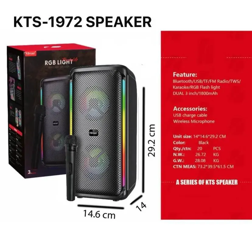 KTS-1972 Wireless Bluetooth Speaker With Wireless Mic – Powerful Bass & LED Lights