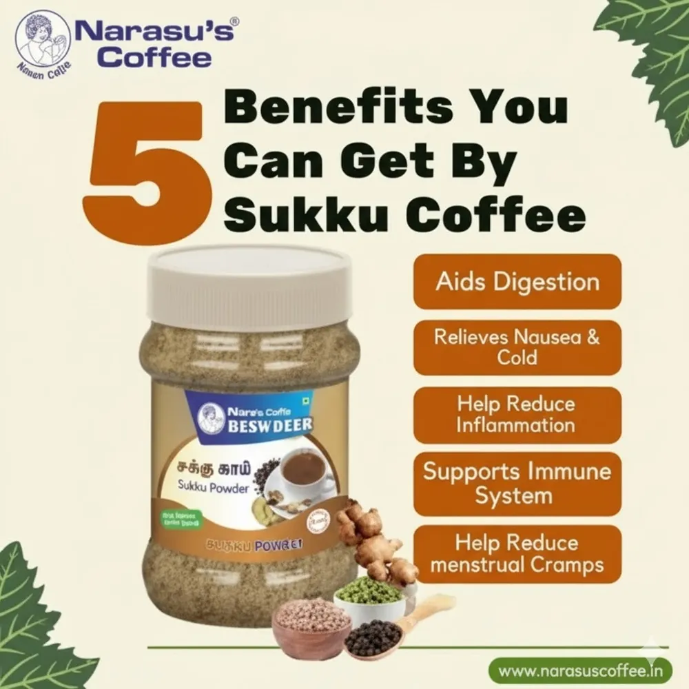 Enjoy the authentic South Indian taste with Narasu’s Besh Besh Sukku Coffee. Made from premium coffee blended with natural dry ginger (sukku), this 200g jar delivers a bold, aromatic, and refres... Read More