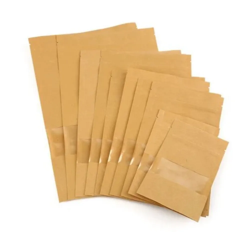 Eco-Friendly Heavy Duty Kraft Paper Ziplock Bags with Clear Window 16x22 cm 250Gm, 50Pcs