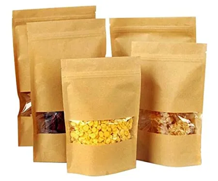 Eco-Friendly Kraft Paper Ziplock Bags with See-Through Window - 14x22 cm, 200 gm, 50 Pcs