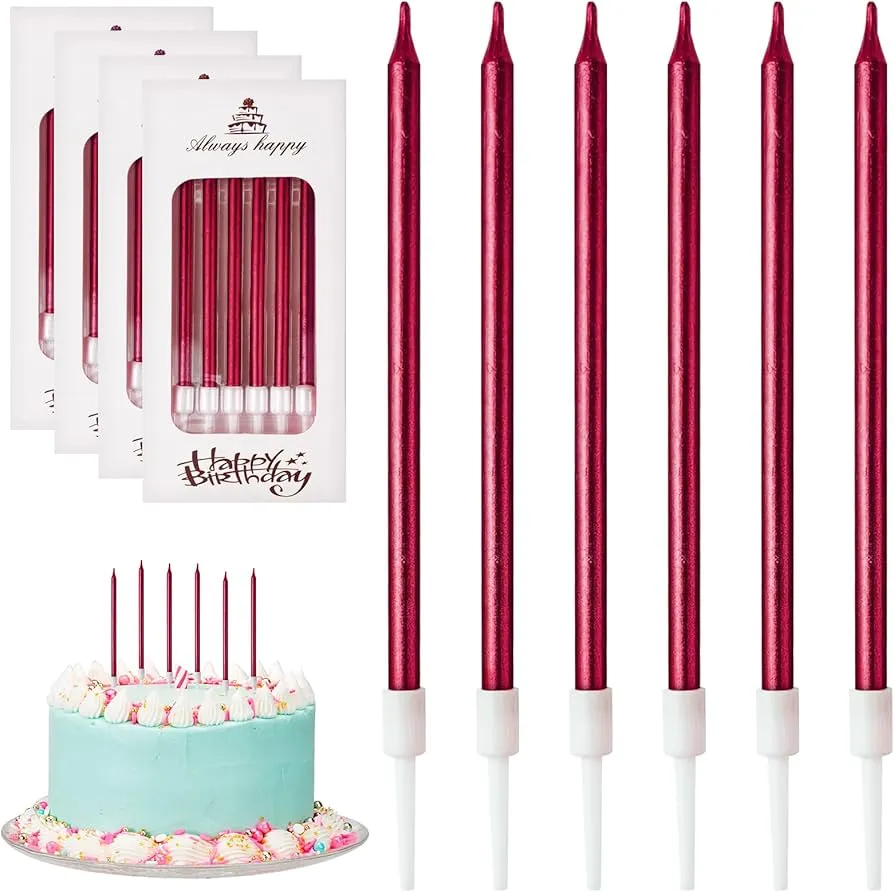 Red Pencil Shape Long Cake Candles Long and Slim, 6 Pcs Set for Birthday and Events