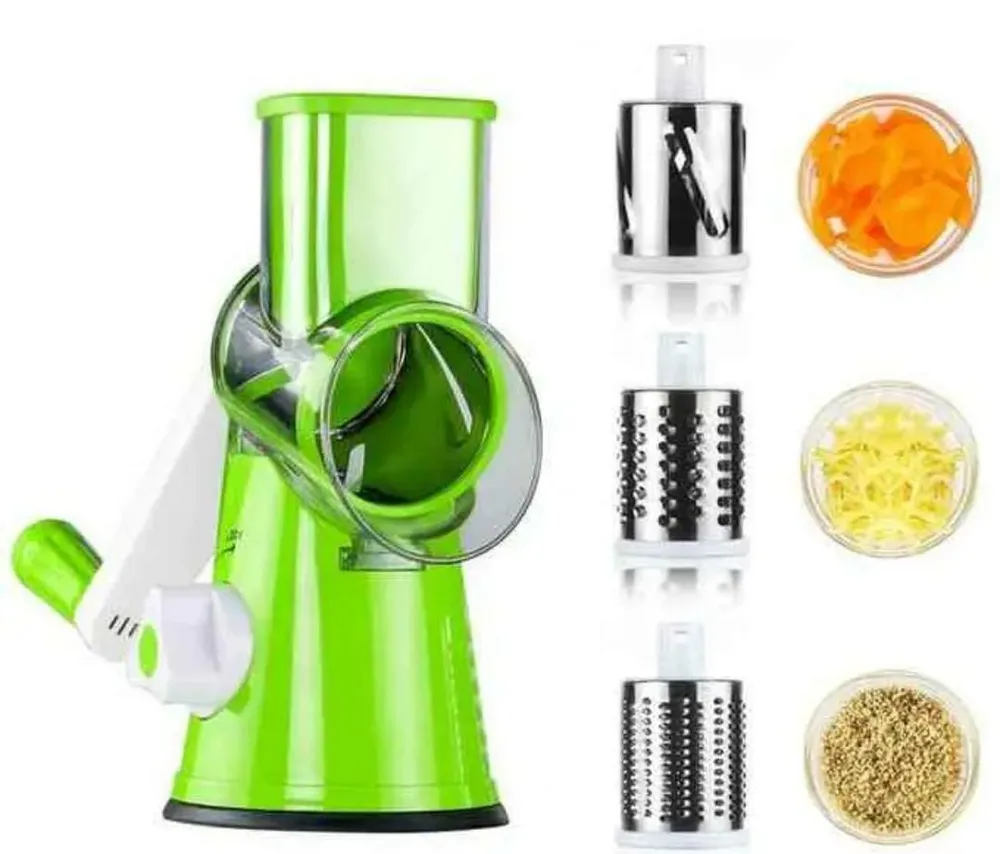 Multi-Function Ergonomic Tabletop Drum Grater with Manual Vegetable Spiral Slicer and Cheese Grater, Compact Handheld Rotary Cutter Description 3 interchangeable stainless steel drums (sli... Read More