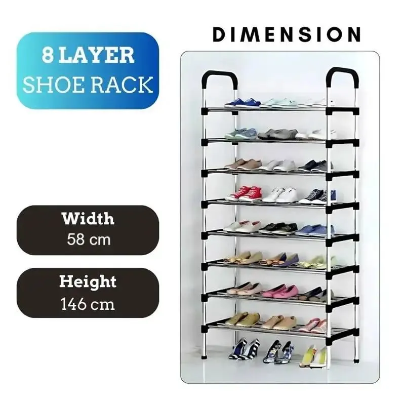 8 Layers Stainless Steel Shoe Rack Multi-layer Shoes Cabinet Storage Organizer Living Room Bedroom Space Saving Shoes Rack