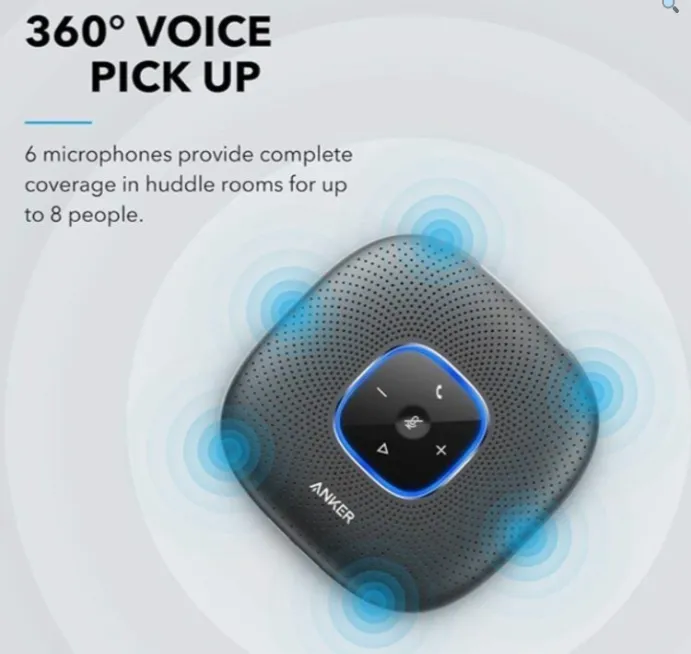 Anker A3301012 PowerConf Ultra Clear Portable Conference Speaker Phone – 6 Mic Array, Bluetooth & USB-C