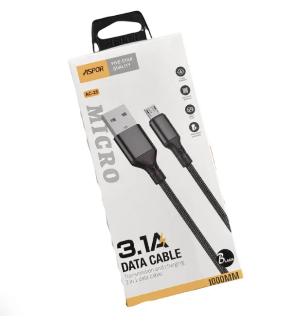 Aspor AC-25 3.1A Fast Charge Micro USB Data Cable – Durable and Efficient Charging Cable