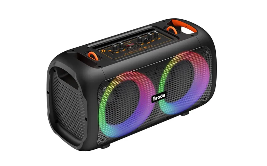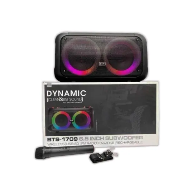 Brodu BTS-1709 Portable Bluetooth Karaoke Speaker with Dual 6.5-Inch Subwoofers, Wireless Microphone, Fire Lights & FM Radio