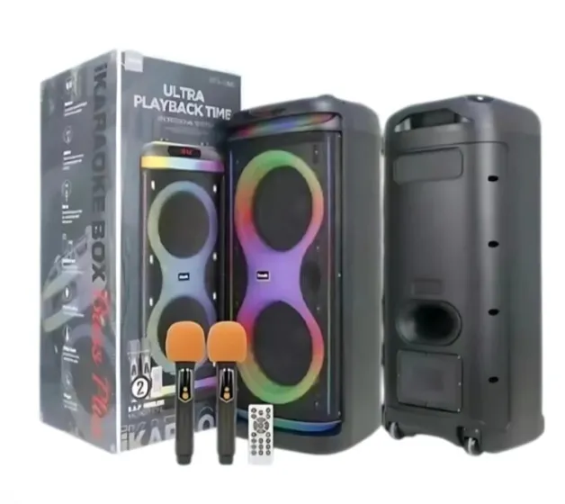Brodu BTS-1995 Bluetooth Karaoke Speaker with Dual 10-Inch Speakers, Dual Wireless Microphones, RGB Lighting & Ultra Playback
