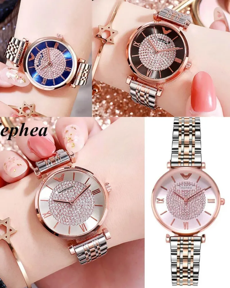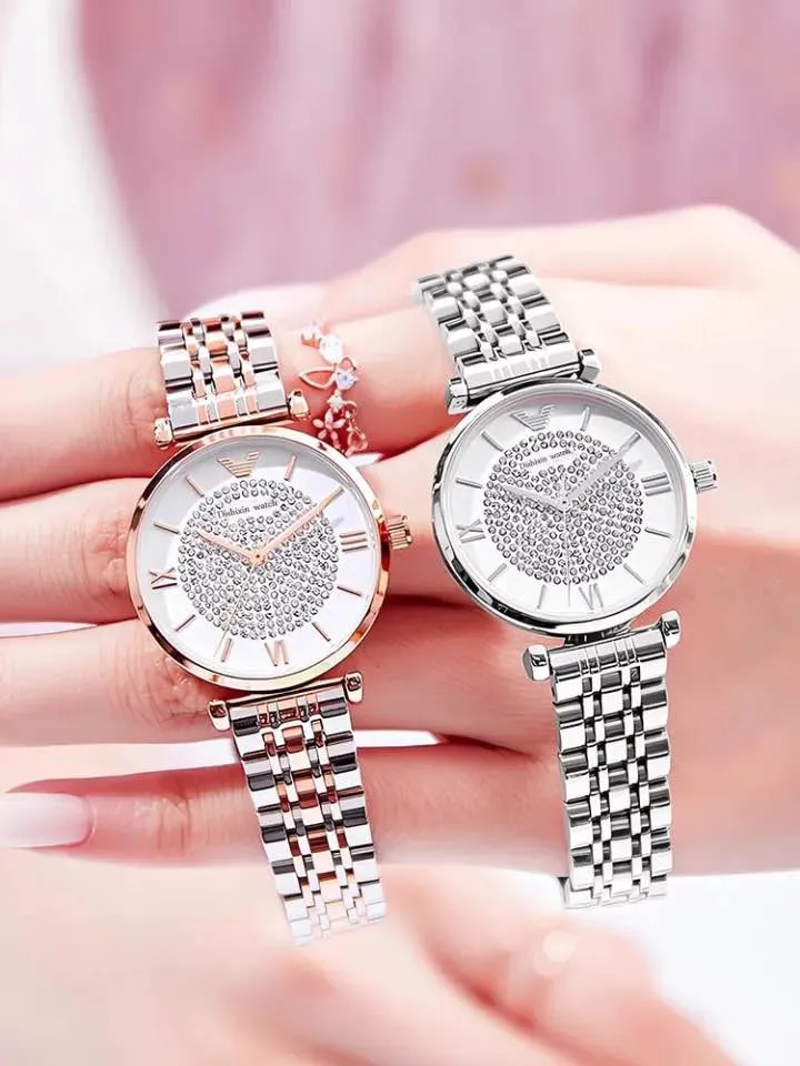 2025 Women Watches Top Brand Luxury Fashion stone Diamond Ladies Wristwatches Stainless Steel Silver, rose gold Mesh Strap Female Quartz Watches
