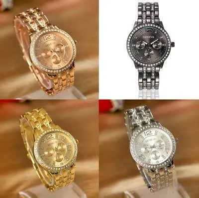 Geneva Ladies Watch - Luxury Fashion Quartz Watch with Crystal Accents - Available in Rose Gold, Gold, Silver