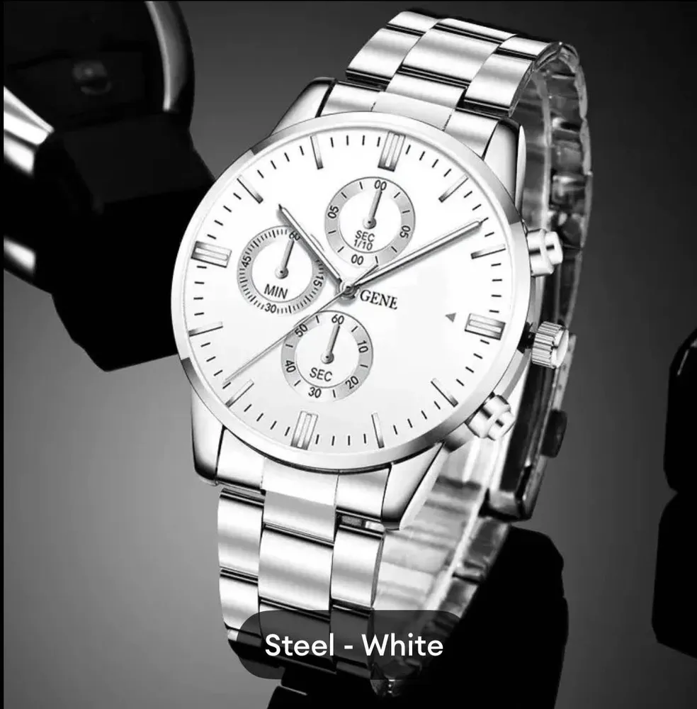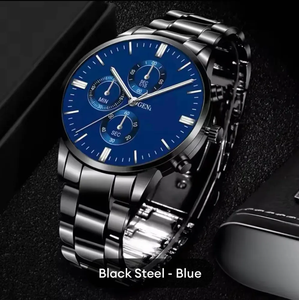 Premium Stainless Steel Strap Luxury Men Watch Quartz Analog Business Chain Casual Wrist Watches For Boys & Gents Black Blue White
