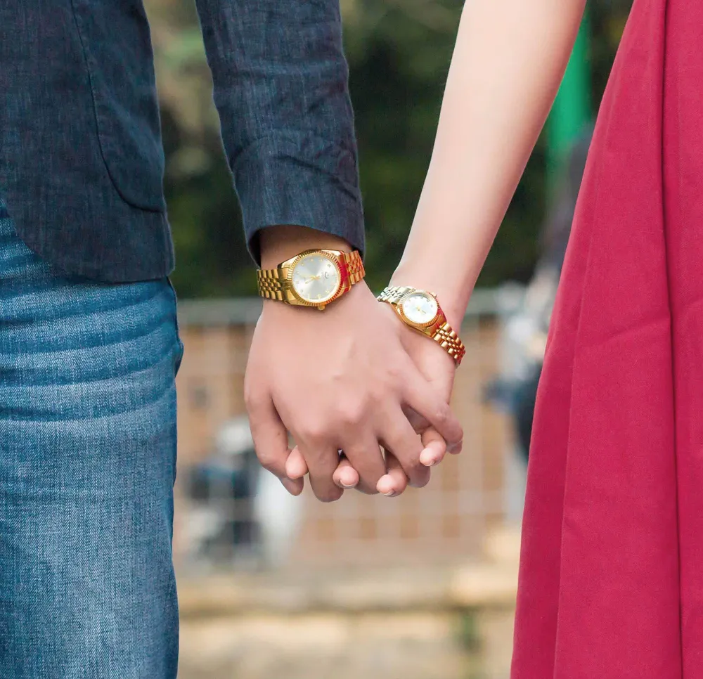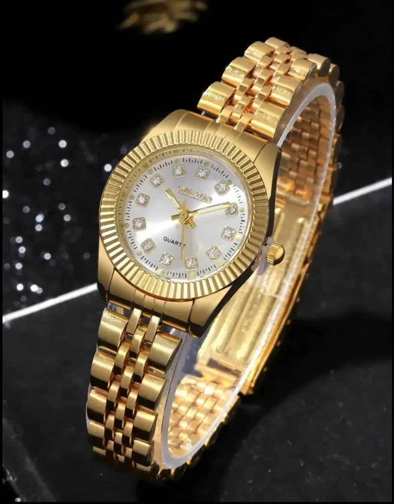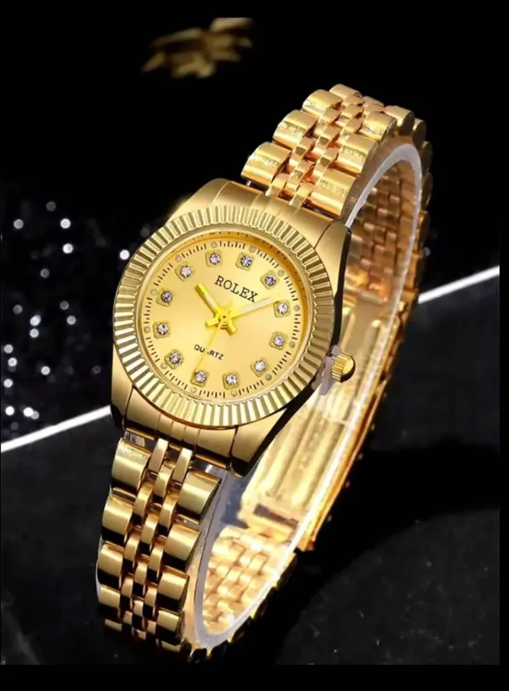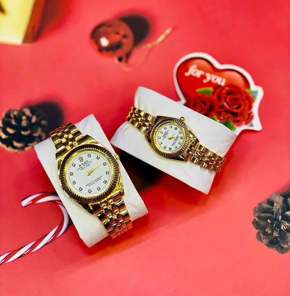 ROLEX couple watches and Ladies Fashion Gold Steel Band Women Quartz Watches with free gift box