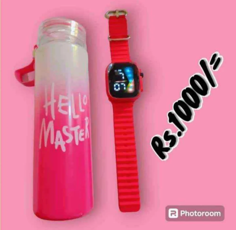 Special offer Hello Master Glass Water Bottle and LED Unisex watches 😍 All variant available ✅Pink & pink ✅ Blue & blue ✅Black & green ✅White & white ✅Pi... Read More