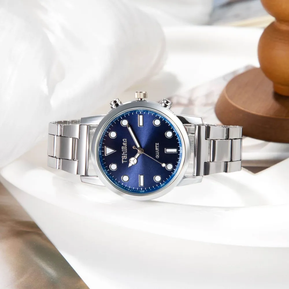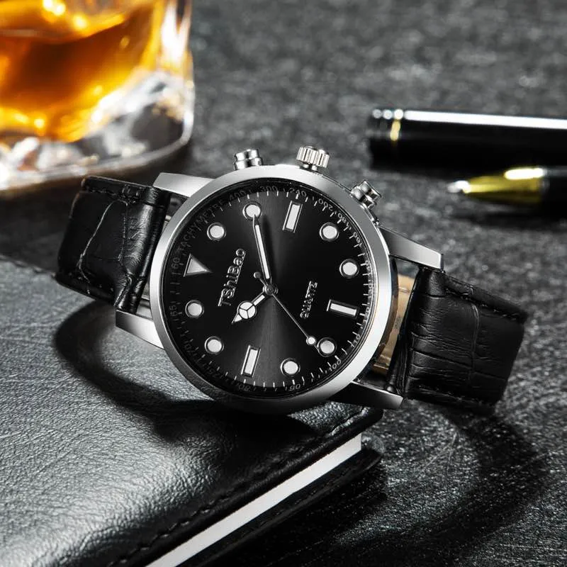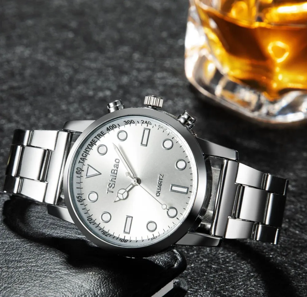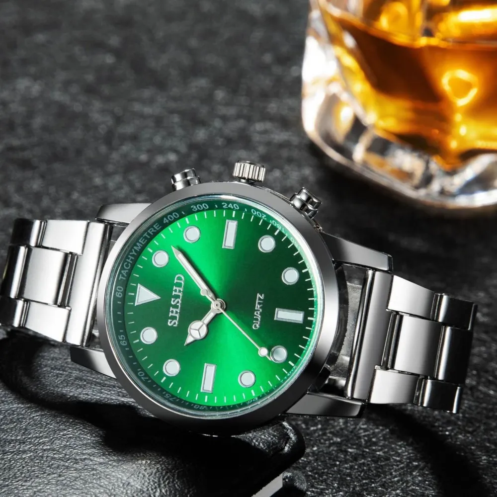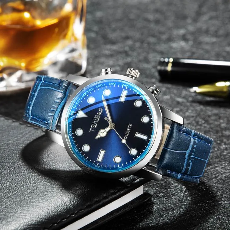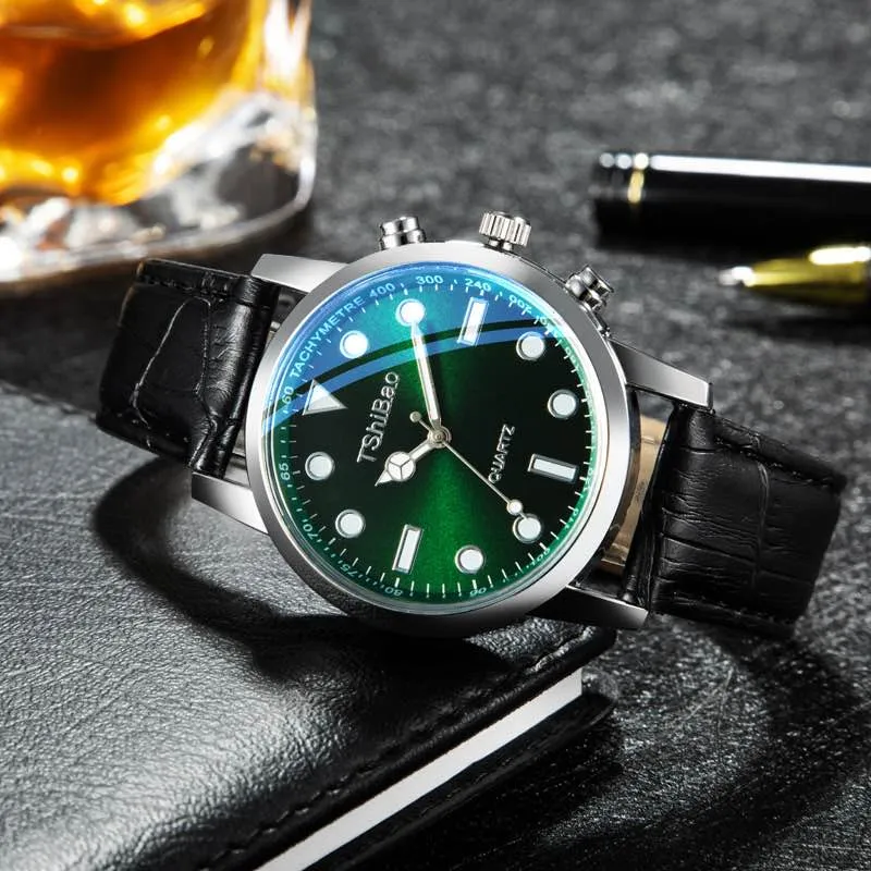 Stainless Steel / Leather Strap Luxury Men Watch Quartz Analog Business Chain Casual Wrist Watches For Boys Gents Black, White, green, blue dial watch
