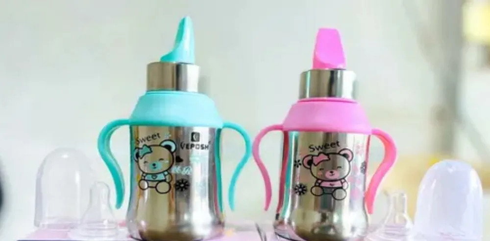 Baby Feeding Bottle Stainless Steel for Kids Steel Feeding Bottle with handle.