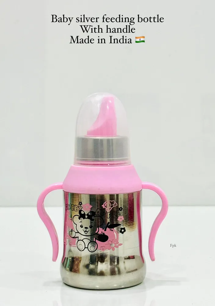 Baby Feeding Bottle Stainless Steel for Kids Steel Feeding Bottle with handle. No Leakage. Made in India Description Product Type : Baby Feeding Bottle Material : Silver Stainless... Read More