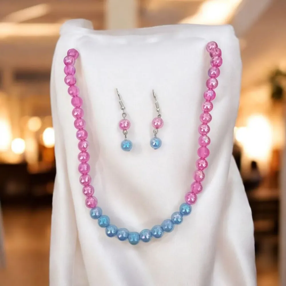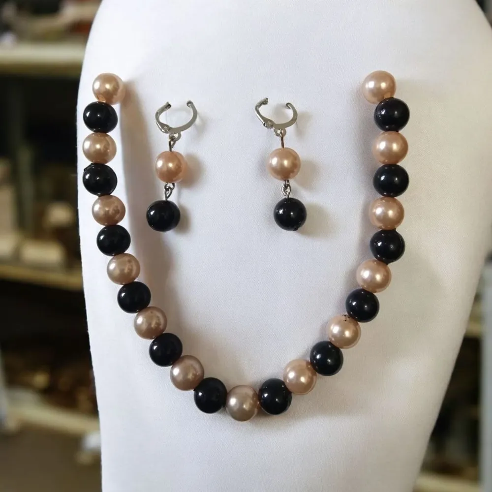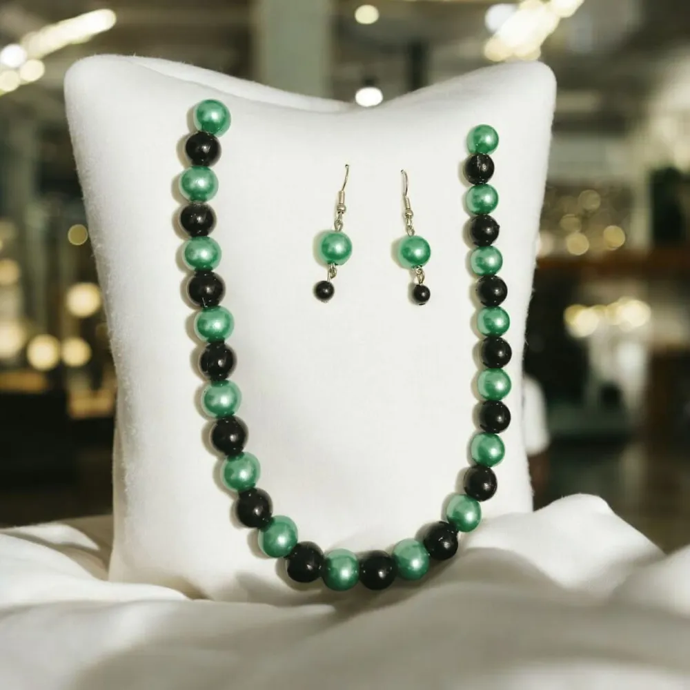 Large Simulated Pearl Necklace and Earings For Women Jewellery Description Material : Pearl Colour : Red & Black, Green & Black, Pink & Blue, Blue & Silver, Black & Peac... Read More