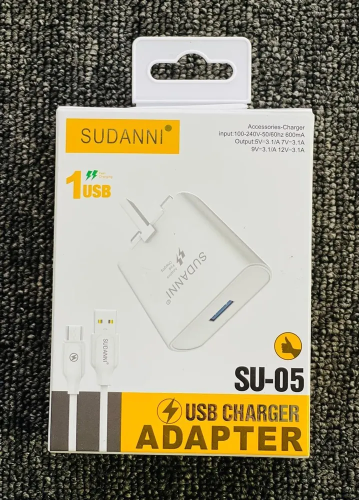 SUDANNI USB CHARGER ADAPTER with model number SU-05.