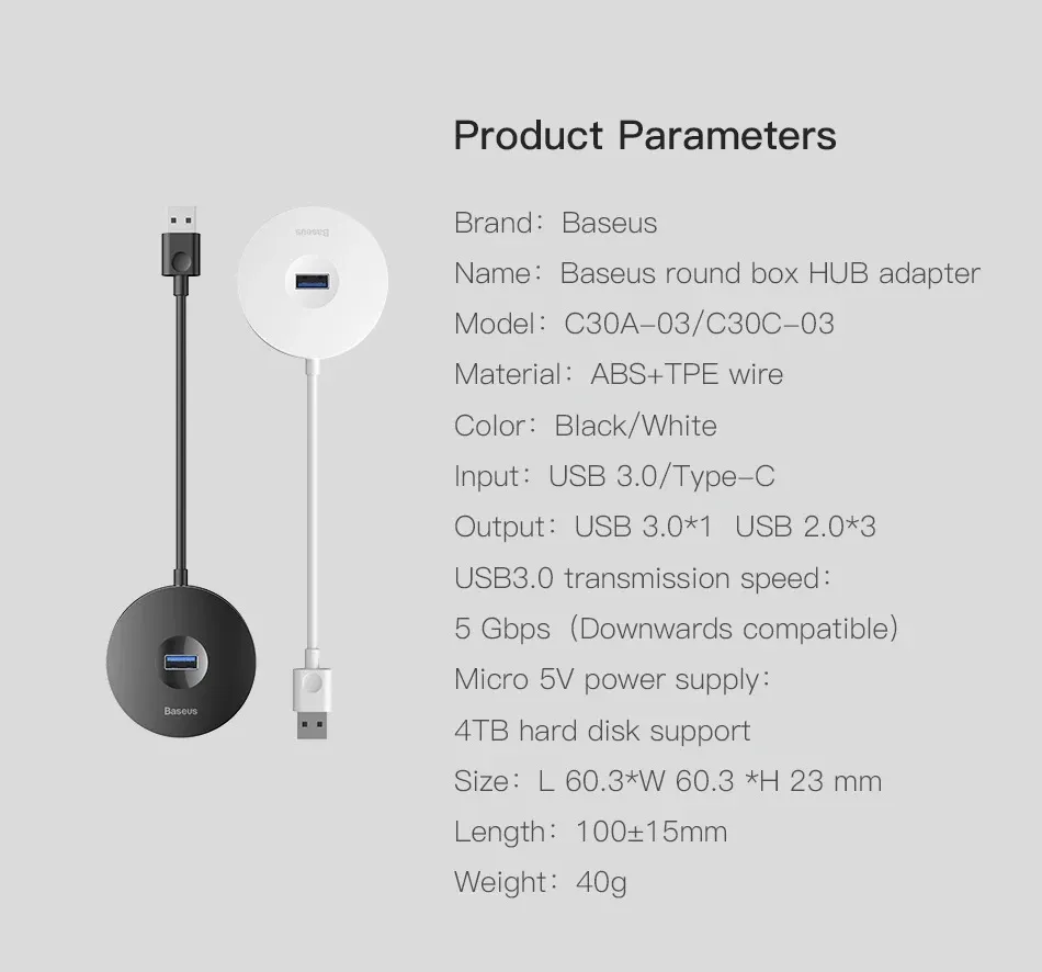 Baseus Round Box 4 in 1 USB HUB Adapter CAHUB-F02