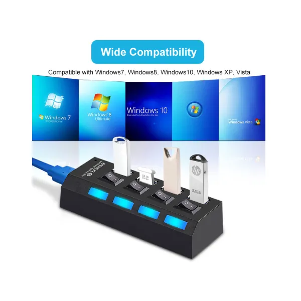 HI-SPEED USB 3.0 4 Port Hub Support 1TB