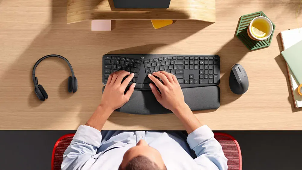 Wireless range:10 m (33-ft) wireless range Improved Typing Posture: Type more naturally with a curved, split keyframe and reduce muscle strain on your wrists and forearms thanks to the sloping ke... Read More