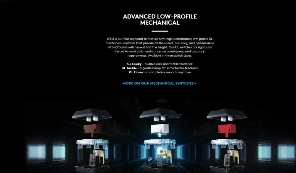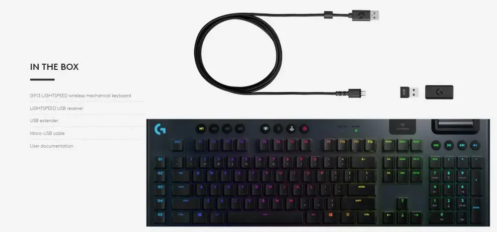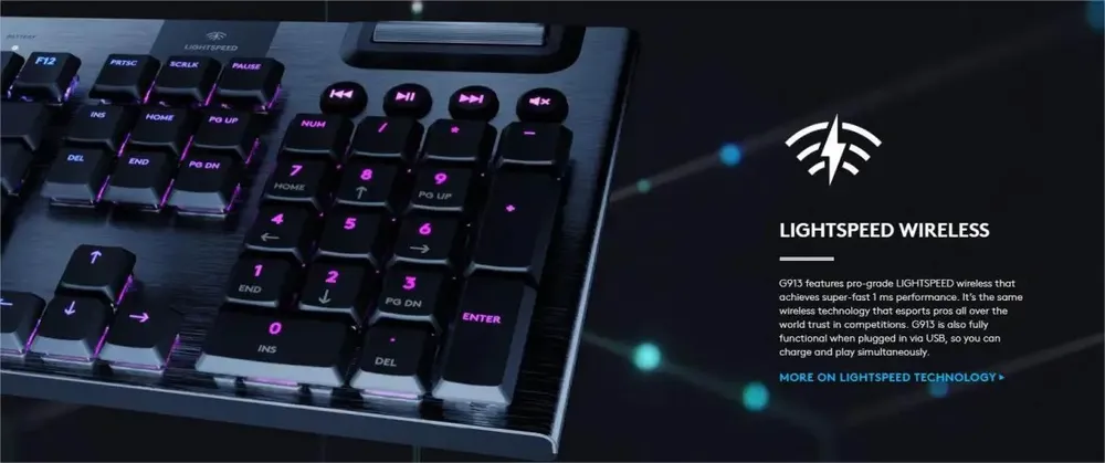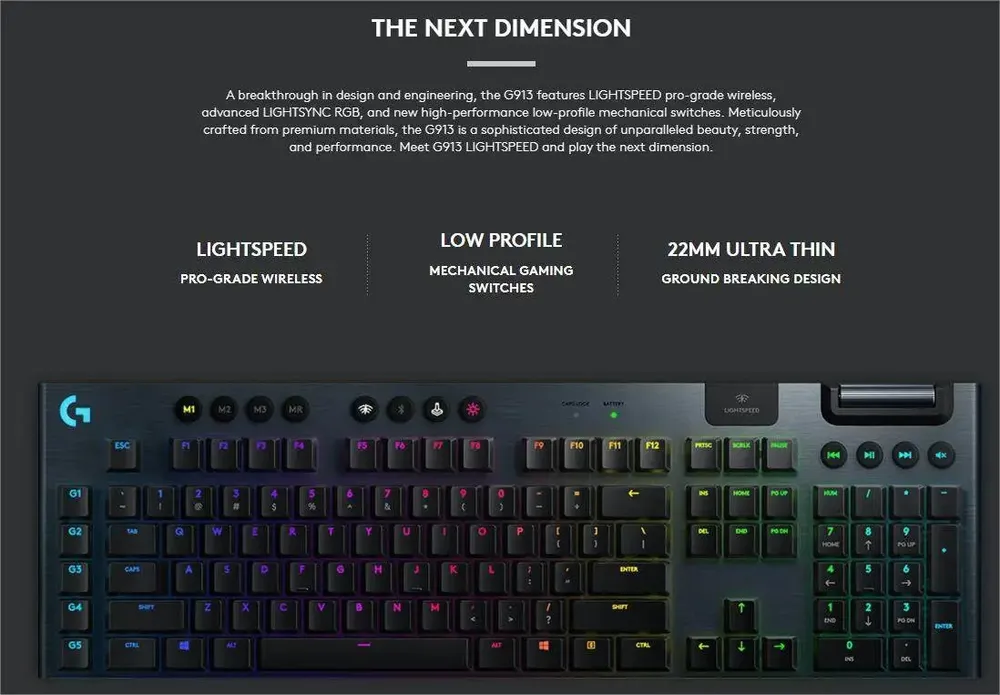 Logitech G913 Lightspeed Ultrathin Wireless RGB Gaming Keyboard Clicky