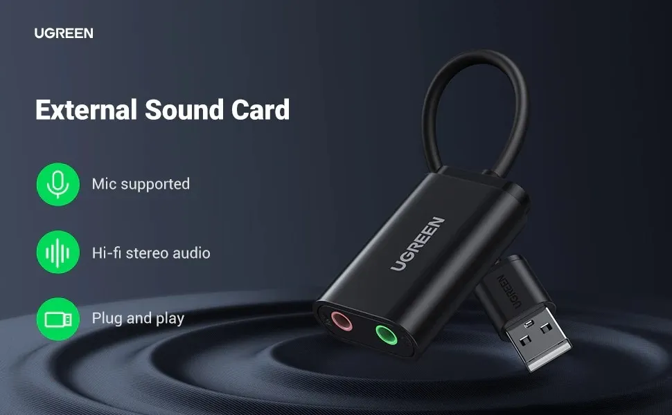 Multi-function Sound Card Premium Stereo Audio Upgraded Inside-Out Plug-and-Play Universal Compatibility: UGREEN USB to 3.5mm audio converter is compatible with Windows 10/8.1/8/7/Vista/XP,... Read More