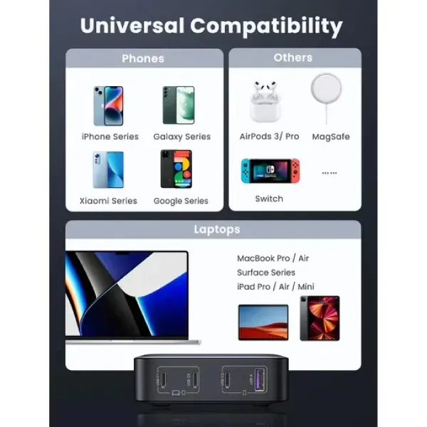 100W Max Fast Charge: Connect a single USB-C device for up to 100W of power. This 100W USB C Charger charge a 13″ MacBook Pro to 100% in less than 2 hours. 4-in-1 Multiport Charger: 3 USB-C... Read More