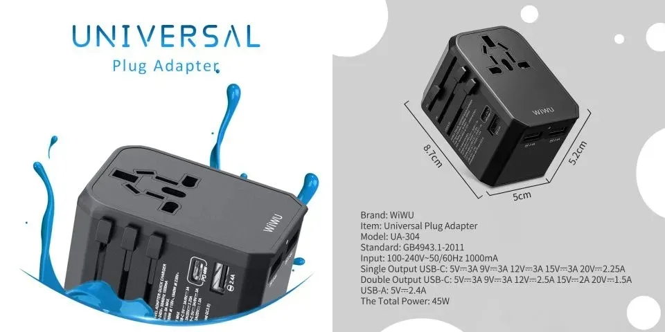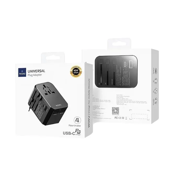Wiwu UA-304 45W Universal Plug Adapter 4 in 1