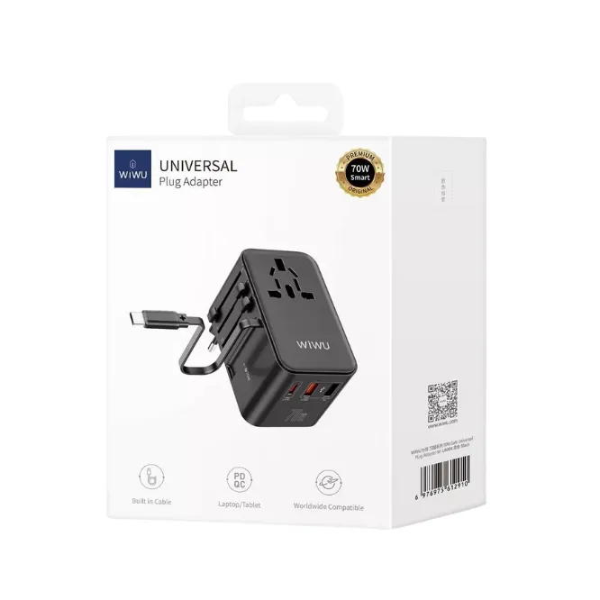 Wiwu WI-UA004 70w Gan Universal Plug Adapter Black
