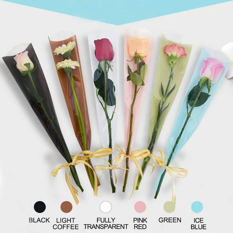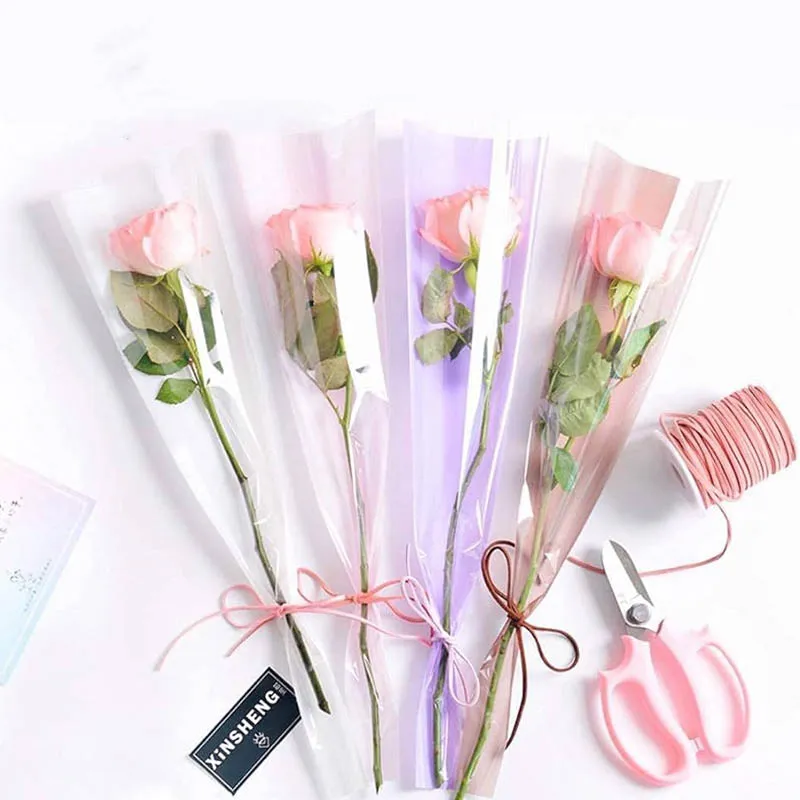 10pcs Transparent Rose Packaging Bags Flower Bouquet Plastic Bag Bouquet Single Wrapping Paper One Straight Bag One Flower Wrapping
