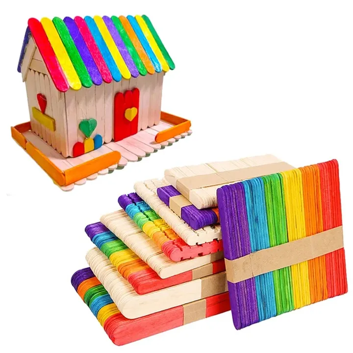 15 cm x 2 cm Large 50 Pcs craft sticks Popsicle sticks Ice cream sticks multi color natural wooden Ice Stick