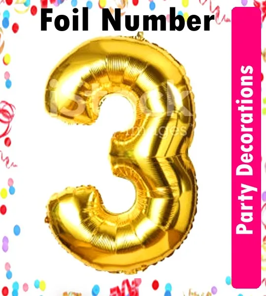 16" Foil Numbers Gold Balloon Numbers 0 - 9 Birthday Party