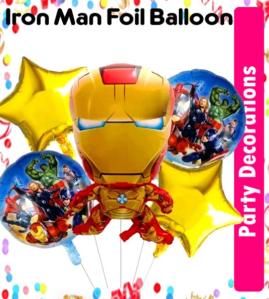 5 Pcs Foil Ballons Iron Man Birthday Party Decorates