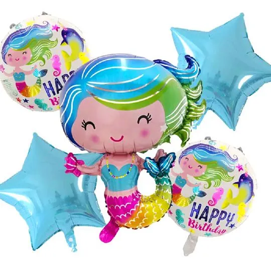 5 Pcs Foil Ballons Mermaid Birthday Party Decorations