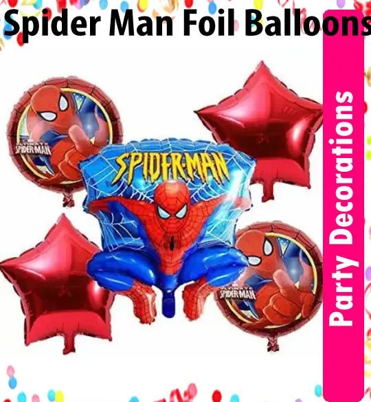 Product details of 5 Pcs Foil Ballons Spider Man Birthday Party Decorations 5 Pcs 5 Foil Balloons Birthday Decorations Party Spider Man Theme