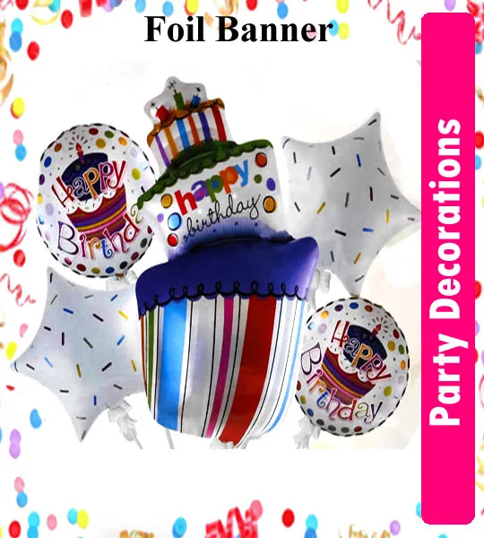 5 Pcs Foil Balloons Cake Birthday Party Decoration
