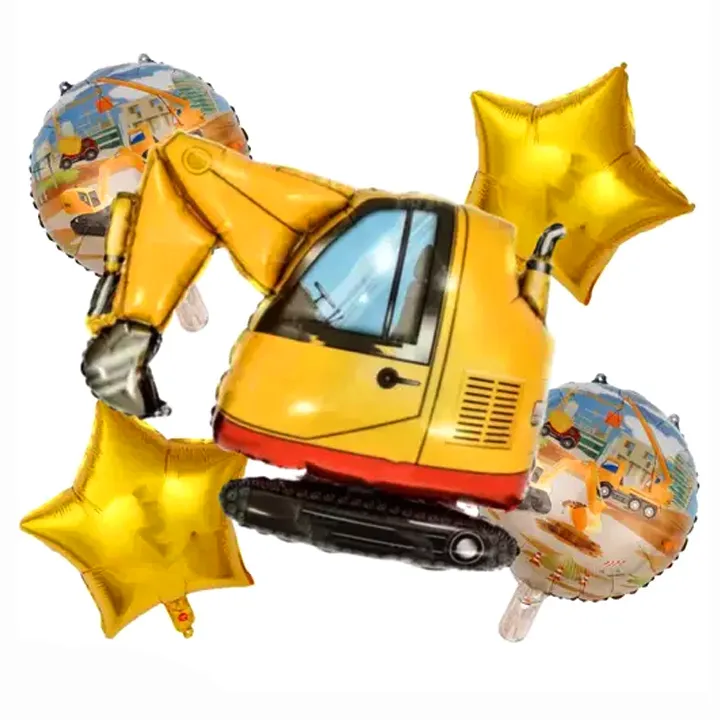 5 Pcs Foil Balloons Construction Boy Birthday Party Vehicle Truck Decorations